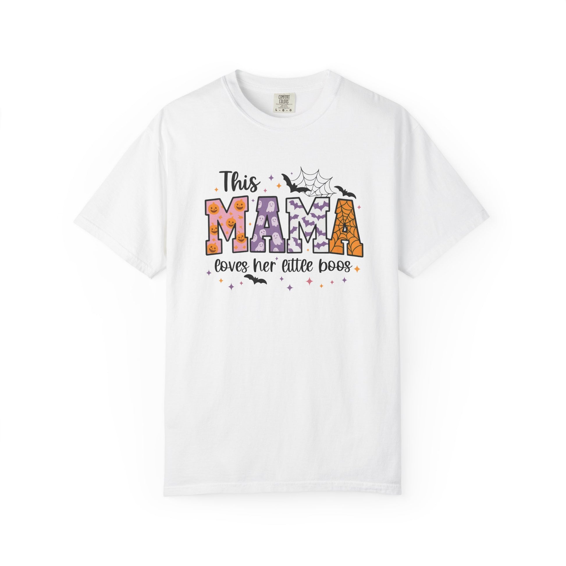 Celebrate spooky season in style with our This Mama Loves Her Little Boos graphic tee! Featuring playful Halloween patterns, bats, cobwebs, and pumpkins, this shirt is the perfect mix of cute and festive. Designed on a cozy Comfort Colors tee, it’s great for moms who love matching Halloween vibes with their little ones.